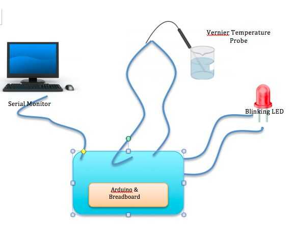 Utilizando Arduino y una Sonda de temperatura Vernier puede medir y comparar las temperaturas entre los líquidos, mientras que también agrega un comando para iluminar un LED. El Sensor de temperatura se determinar el nivel de temperatura de un líquido e indicar si es caliente o frío en relación con la configuración indicada en su Arduino. Dependiendo de la temperatura del líquido, una luz se apaga sobre/que indica cuando el líquido haya alcanzado la temperatura deseada.