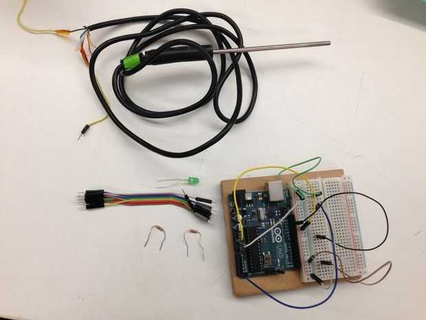En este proyecto, aprenderás cómo hacer una función de sonda de temperatura con Arduino, así como la función de hacer que un LED emiten luz para una temperatura dada. Comienzas construyendo el circuito, conectar el código y finalmente prueba con diferentes temperaturas del líquido.