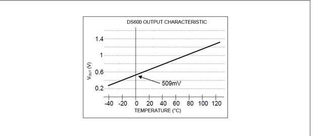 1315mV. (VOUT = dispositivo temperatura (° C x ΔV/ΔT) + VOS)." - DS600U + hoja de datos.