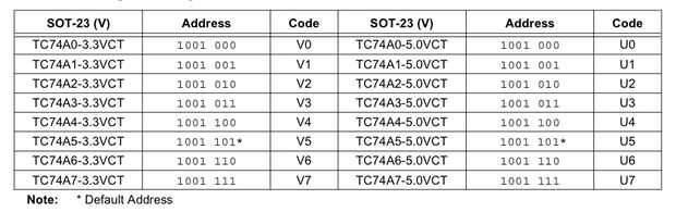 La tabla incluye encontrar su número de parte y dirección binaria correspondiente.