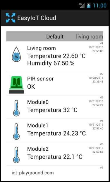 Nube de EasyIoT trabaja también en el teléfono móvil o tablet. También está disponible la aplicación nativa de Android.