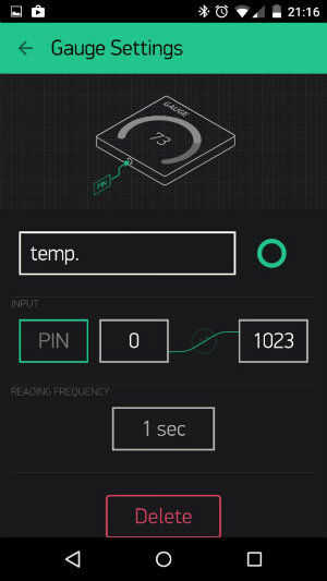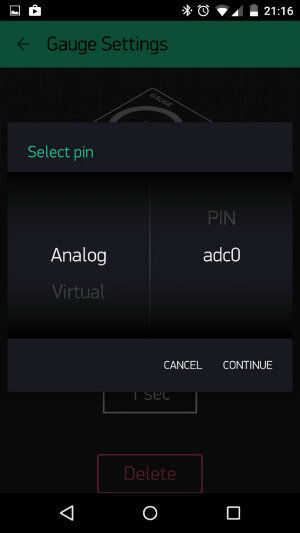 en la aplicación Blynk utilizar widget valor o widget de calibre