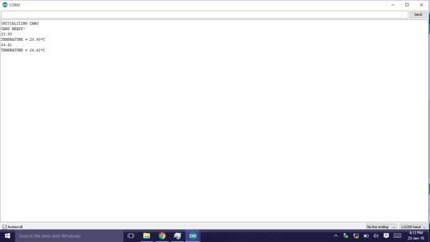 -Las lecturas de temperatura se vierten en un fichero de texto en la tarjeta SD. (También aparece en el monitor serial)