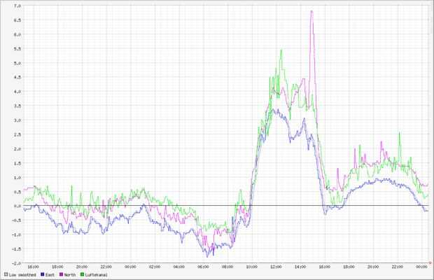 El sol puede golpear un sensor, enviando desde -1 a la 30 c en 5 minutos.