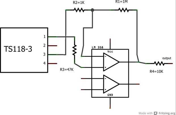 Si deseas el diagrama del circuito para cómo el op-amp aumenta el voltaje de la termocupla.