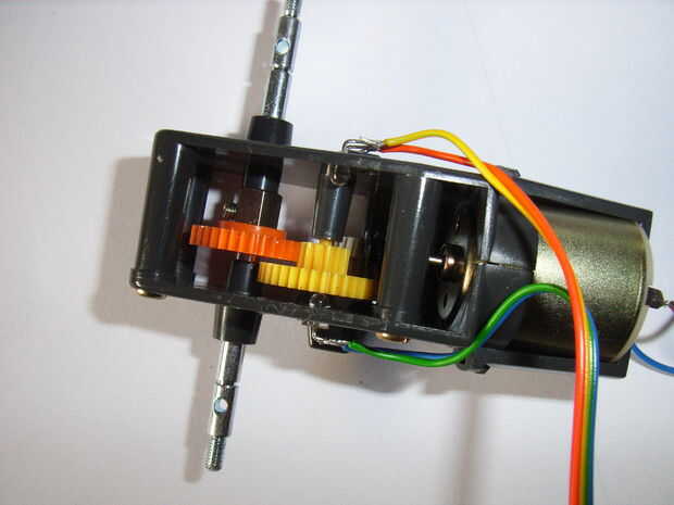 Caja de engranajes de motor doble Tamiya el es excelente para pequeños robots - es barato (8.95 en Pololu.com) y los motores son un montón lo suficientemente fuertes como para alimentar un pequeño robot. Usted también puede elegir entre dos velocida