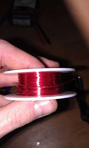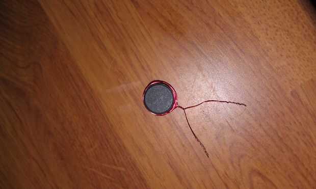 El sensor es lo más barato y fácil como se pone. Tomé un paquete de imanes de cerámica de 1/2" de Radio Shack por alrededor de tres dólares. (Comprar estos paquetes de cinco cada vez que necesito un imán, y luego el resto desaparece. Al parecer, son biodegradables, o tengo ratones que son mucho más sofisticados que puede esperar.) Por envolver algunos bien esmaltadas alambre alrededor del imán (ver foto) tenemos un pastilla magnética, como en una guitarra eléctrica. Es difícil de ver en la imagen, pero hay probablemente quince o veinte vueltas de cable en allí. No preocuparse del norte o del sur postes, y no creo que realmente tendría un impacto en la función.