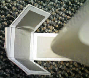 dibujar en cartón y recortarlo. Tres llanuras adjuntará junto con tejido conductor. Puede utilizar hierro para sujetar la tela conductora.