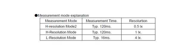 se rechaza el ruido). Y modo de resolución de H es 1 l x resolución por lo que es conveniente para la oscuridad (menos de 10 lx)
