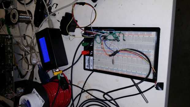 Si usted tiene un tablero de pan se trata de una manera más fácil de probar todo, si no solo puede soldar directamente. Conecte los cables de datos para los conectores de 4 pines. Tomar los cables de tierra y positivo de uno de los conectores y ejecutarlos a la tierra y las conexiones de positivo en su tabla de pan ambos conectores tienen su propia energía pero sólo necesitamos una fuente para el pan-embarque. Tomar el cable conectado a la resistencia de 4,7 k Fije el tablero de pan y dejar la habitación una fila a cada lado del alambre. Ahora Conecte el pin de datos en los sensores de temperatura de un cable a la misma fila que el 4.7 k. Todos pueden compartir un autobús gracias a abordar. Ahora Conecte el cable de tierra de sensores de temperatura a una fila en un lado y correr un cable de esa fila a tierra. Luego conectar el positivo a una fila en el otro lado y correr un cable de la fila a positivo. A continuación tome el alambre de resistencia de 10 k va a positivo y funcionamiento que para el pan del tablero con una fila a cada lado para positivo y negativo. Conecte el pin de datos en el sensor de flujo a los 10 k de alambre y respectivamente llevan tierra y positivo a tierra y positivo. Ahora toma las dos 10 k de otro conector de 4 pines con una fila en ambos lados. Fije un lado el termistor de 10k y el otro al positivo, hacer esto para ambos termistores. Tan simples como todos sus sensores son de instalación y listo a prueba o calibrar. Ahora para las bibliotecas y código. Vas a necesitar conectar todas estas bibliotecas Arduino IDE, un cable, temperatura de Dallas y líquido Crystal_i2c. Luego cargar el alambre-dirección-finder en el sketchbook de Arduino y ejecutarlo para encontrar la dirección de sus sensores de temp. Copiar las direcciones. Abra el archivo temp_disp_ser_web en el cuaderno de bocetos, este es mi código. Agregar las direcciones encontraron en el buscador de dirección de un cable a líneas 45-48 de mi archivo temp_disp_ser_web y añadir el código. Ahora debe tener un funcionamiento caja de sensor de temperatura, la CPU y el flujo de agua. Tomé todo el tablero de pan y corrió largo cables para poner los sensores donde quería. Felicidades. No dude en preguntar cualquier duda.