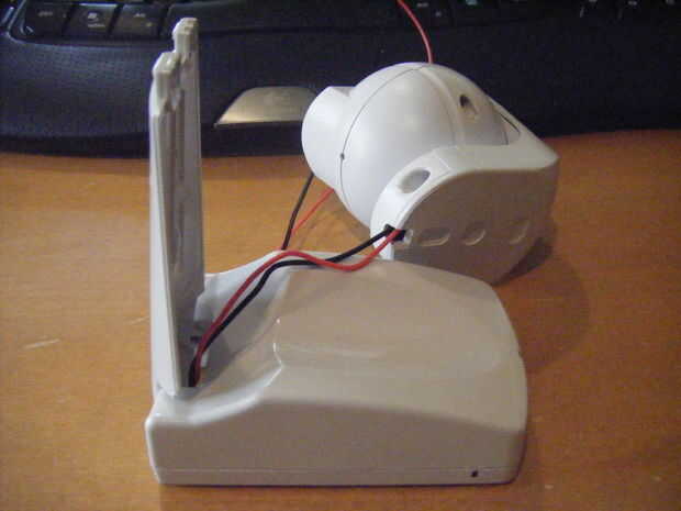 Si rip abierto la parte inferior, su bastante fácil modificar esta base para encender el láser. Sin embargo, el problema es que las verrugas de pared que vienen con el equipo de Homesight son 9V y 12V. Puesto que el láser funciona en aproximadamente 3, 3V (3 pilas de botón x), voy a tener que hacer algo al respecto para que no queme el laser antes de mi intruso viene un golpeteo.