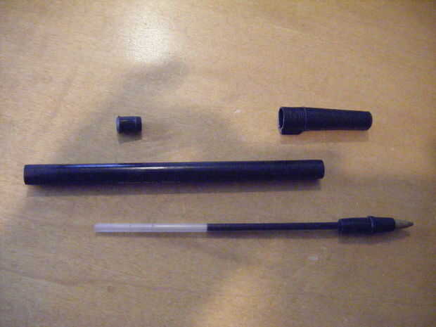 En primer lugar, encontrar un bolígrafo. ¿Sabes, el tipo te roban desde habitaciones de hotel? ¿El tipo utilizado para tacos spit en la escuela primaria? sí, esos. La pluma de desmonte y deseche la tapa y el cartucho de tinta. Esto te deja con el tubo y el tapón pequeño en el extremo. Sacar el enchufe porque es donde va el fotoresistor.