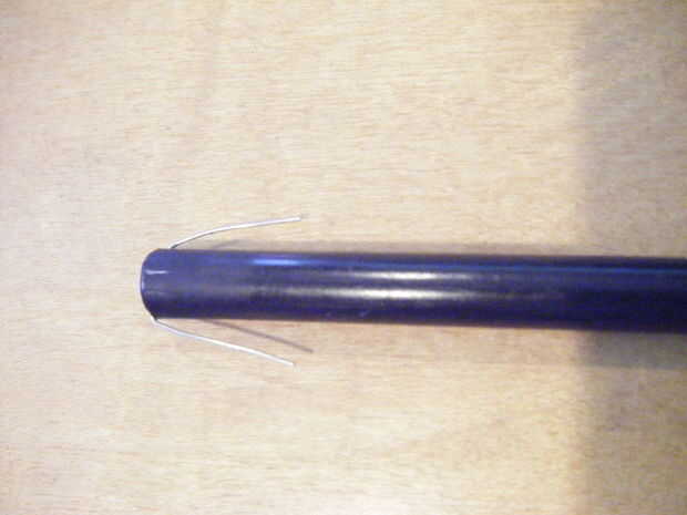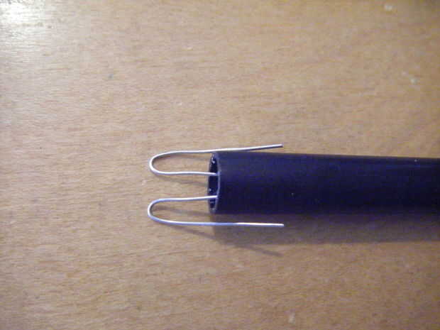 Enderezar las piernas de la fotorresistencia y deslícela en el tubo de 1/2 pulgada o menos. Doblar las puntas de la fotorresistencia alrededor del borde del tubo. Mermelada el tapón de nuevo en su lugar, fijando los dos conduce entre el lado del tubo y el tapón.