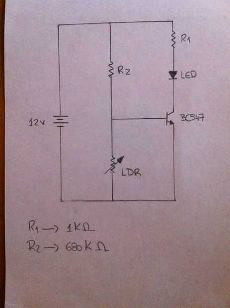 ¿Sensor oscuro con LDR, transistor y un LED (1 / 3 paso)