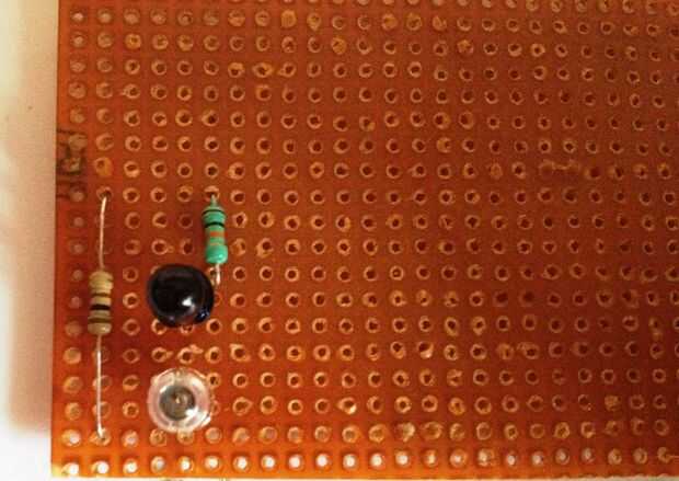 Yo he marcado hacia fuera de cada terminal para el LED IR y el phototdiode. Ahora a soldar...