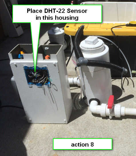 Este Sensor se encuentra en la parte de doble pierna del jardín de balcón. Está ubicado en la caja hacia el tanque de pescados. Una placa de la cubierta protege el sensor contra los elementos pero da acceso fácil al sensor en caso de que el sensor falla en cualquier momento. Este fácil acceso permite el sensor cambiar si es necesario.