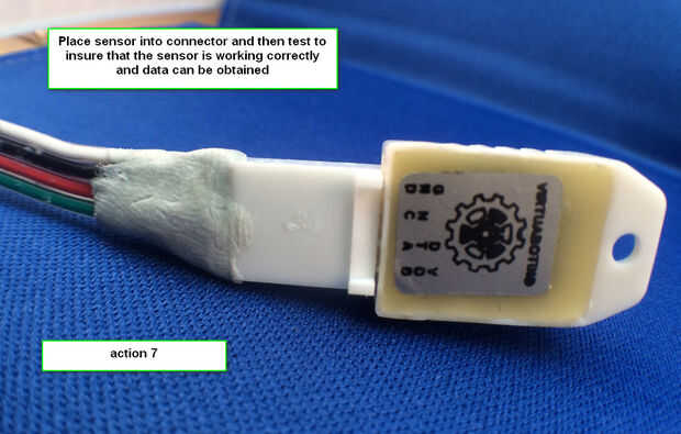 Coloque el sensor en el conector y luego la prueba para asegurar que el sensor está funcionando correctamente y pueden obtenerse datos