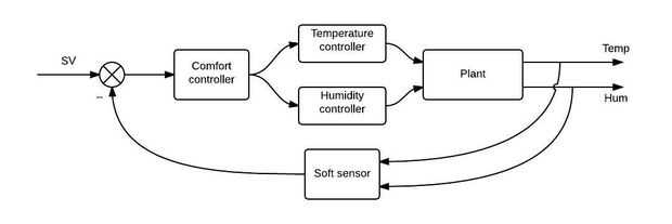 ¿Cómo puede utilizarse para el control de comodidad que dices? Al final estoy agregando un diagrama de bloques del lazo de control (control de alimentación hacia adelante). Consta de regulador de temperatura y humedad en cascada al controlador de comodidad. Pero este es un tema para otro Instructable. No dude en comentar.