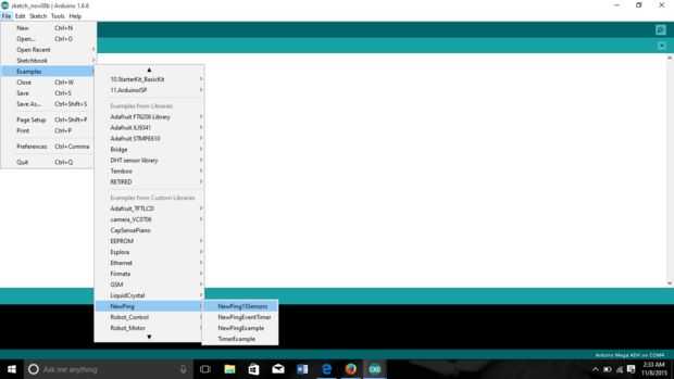 Descargue el archivo zip y descomprimirlo. Copiar pegarlo en la carpeta de la biblioteca en la carpeta de Arduino. Reinicie el IDE de Arduino y usted debería ser capaz de ver. Vuelva a ejecutar el sketch de ejemplo Ping de nuevo. Encontré la biblioteca aquí: