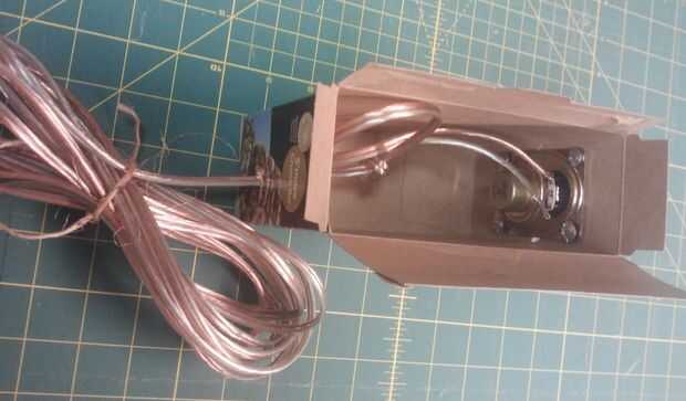 Puede pasar cualquier cantidad de tiempo y dinero haciendo las cubiertas del altavoz, pero puesto que los altavoces se oculta en los arbustos fui la ruta barata y montados en cajas de alimentos después de cortar un agujero para los altavoces (Radio Shack p/n 2730092). Ayuda para poner un nudo en la sección de cable de altavoz dentro de la caja para actuar como un alivio de tensión, evitando que el cable tirando del altavoz. Sello hasta la caja con cinta cuando termines.