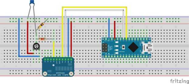 En el circuito anterior tenemos leyendo un simple potenciómetro a través de su '' escobilla a través de un chip de ADC de 8,25 K resistencia y 16 bits. Crucial, también hay un condensador de 100nF y un resistor de 100K va en el riel de la tierra de lo limpiaparabrisas. Nos vamos a concentrar en el resistor de 100K. 100K es el valor recomendado del fabricante del instrumento.
