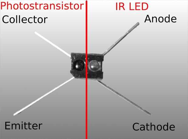 - El fototransistor limita la corriente de 0.5uA (oscuro) a 0.8mA (luz).