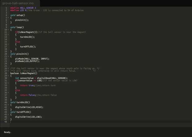 El código es bastante sencillo y lo único que hace es encender el led en el pin digital 4 cuando un campo magnético se trae cerca del Señor de la sala.