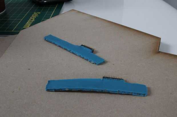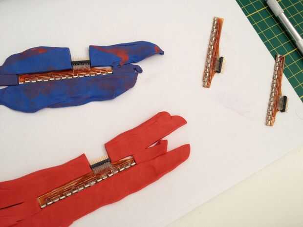 He encapsulado mis sensores con silicona regular off-the-dejar de lado el bastidor. Utilizar plastilina para crear un molde y luego simplemente rellenarlo con silicona, como se puede ver en las imágenes anteriores. Esto aumenta dramáticamente la calidad de las lecturas del sensor.