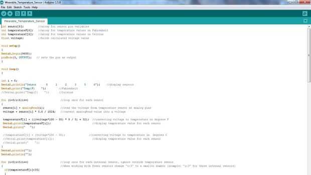 para (me = 0; i < 5; i ++) ignorar //loop una vez para cada sensor interno, sensor de temperatura externo {//when trabajando con menos cambio de sensores "< 5" a un número menor (ejemplo: "me < 3" por tres sensores internos) si (temperatureF [i] < 35) {analogWrite (3, 200); / / analogWrite valores de 0 a 255 delay(1000); //waiting 5 segundos analogWrite (3, 0); / / analogWrite valores de 0 a 255 delay(1000); //waiting 5 segundos Serial.print ("sensor alarma : "); Serial.println(i); } } }