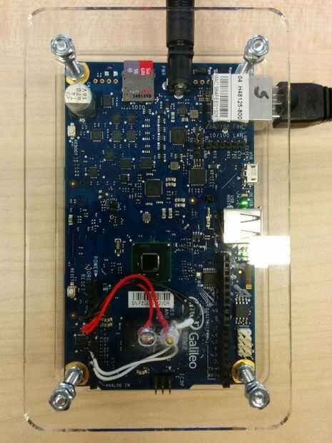 Iniciar el Galileo (usando la imagen del proyecto principal), conectarse a internet y cargar el sensor esbozar en él.