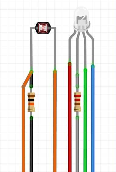 Inserte el LED y la fotorresistencia en su lugar [fotos 8 y 9].