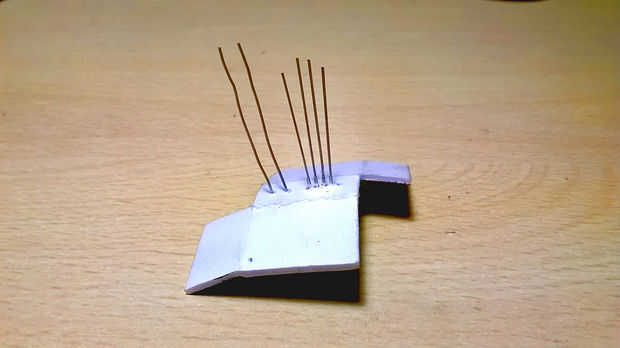 Fijar su posición con tubos de encogimiento de calor [cuadro 15]. Es esencial fijar la posición de estos dos componentes: si son libres de moverse, las lecturas del sensor no será fiel. Tenga en cuenta que en la foto 15 hay un error: se tocan las dos clavijas de la fotorresistencia. Esto no debe ocurrir (he luchado mucho para averiguar lo que era el problema cuando el sensor de prueba).