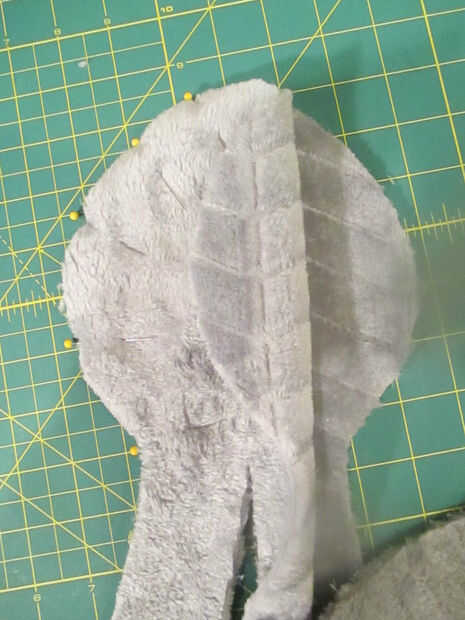 Cose a los lados cabeza para cada segmento, justo donde las patillas comienzan y terminan.