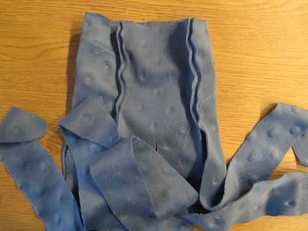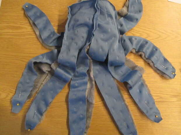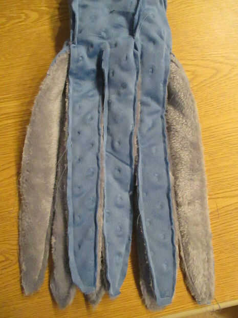 Yo coser 4 sets de azul brazos juntos, luego deslizar sobre el cuerpo gris, para que se toquen los lados del derecho del tanto en tela.