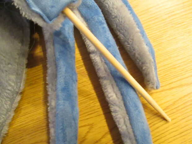 Lado derecho dado vuelta hacia fuera. El extremo romo de un palillo funciona muy bien.