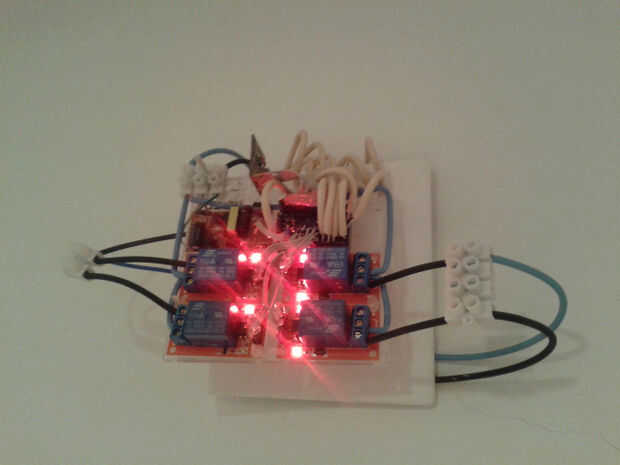 2-3 centímetros del aislamiento del cable para exponer los dos cables y luego tal vez 5 mm del aislamiento individual de cada cable de la tira de la tira. Conecte los dos cables a los dos conectores del interruptor de la pared (puede que necesite una pieza de un cable más grueso demasiado si los conectores no producen roces en cables que fina). En el otro extremo, antes de conectar a la Arduino intentan fijar mecánicamente a base de un nodo u otra cosa para que no sólo esté sostenidos allí con conexión eléctrica de Arduino.