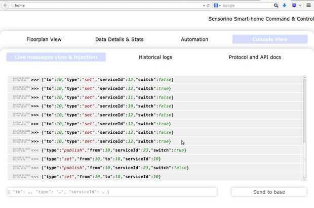 Si no sucede eso, que es totalmente posible porque Sensorino no ha recibido una gran cantidad de pruebas sin embargo, usted querrá comenzar solución de problemas con la verificación de si la comunicación funciona en todos. En la interfaz web ir a la pestaña de consola para ver si está recibiendo cualquier cosa cuando accionar los conmutadores. También puede comprobar si los mensajes se transmiten bien en la dirección opuesta escribiendo algo, como un comando para activar un relé, y ver si tuvo el efecto esperado. El siguiente mensaje dirá nodo bajo dirección 10 para activar su relé 5 (servicio 5 ID), ajustar según su nodo remoto 'sketch s.