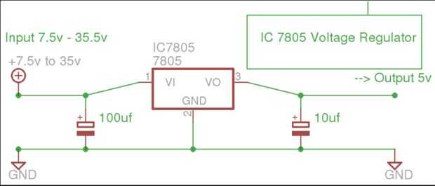 Paso hacia abajo de la fuente de 12V a 5V con LM7805 (ver imagen) para la alimentación.