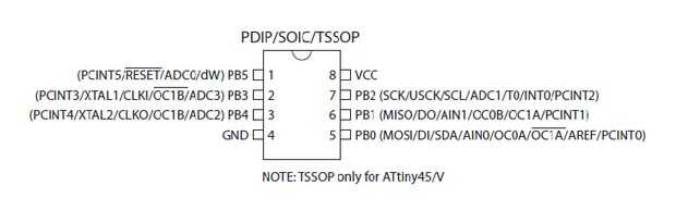 Comience conectando ATTiny85 en el protoboard y realizar las conexiones como se indica a continuación: