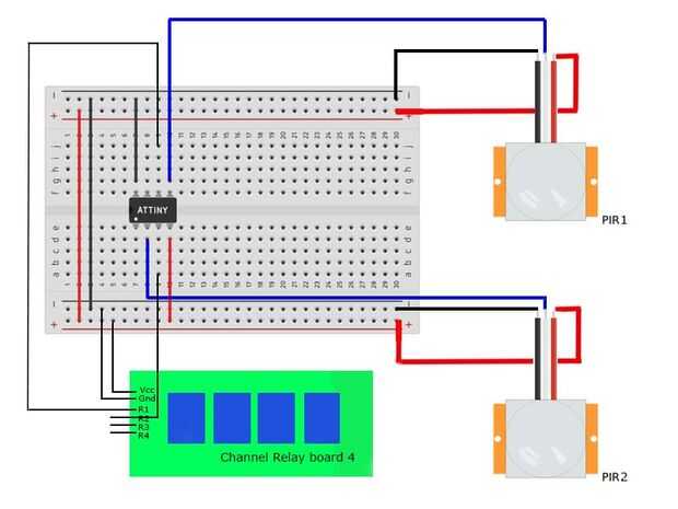 Para conectar la placa de relé a Attiny85 siga el debajo de las conexiones: