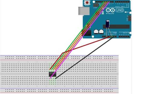 Ahora con todo listo empezamos el attiny85 de programación. Conectar el arduino uno a attiny85 utilizando protoboard como abajo.