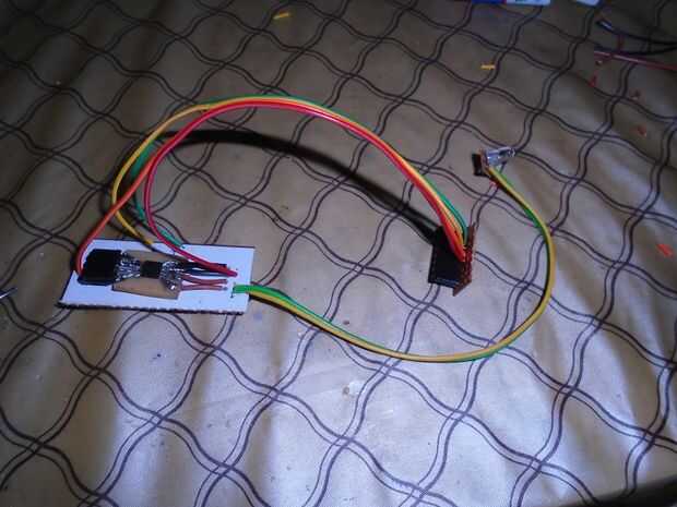 -entonces los 4 cables de los cables de cinta para IC de la soldadura para conectar la placa de relé y su fuente de alimentación (imagen 3) terminarlo con las cabeceras, se conectará a los hombres encabezados de placa de relé.