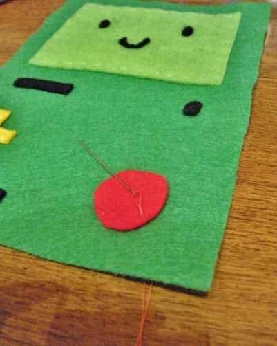 Coloque en consecuencia como se ve en mi foto y para coser en un hilo rojo.