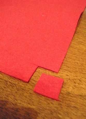 Toma tu hoja de rojo fieltro y corte un cuadrado pequeño de la esquina del mismo tamaño como hecho el amarillo.