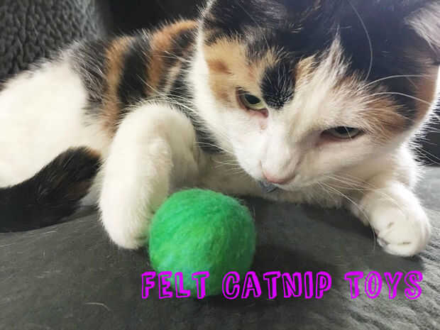 Mis gatos encantan catnip. Esta noche mientras que un amigo y yo estábamos haciendo algunas mojado fieltrar (y no quiero cometer una horas tiempo del proyecto) terminé va hacer hierba gatera llena de bolas de fieltro mojados---que fueron todo un éxito.