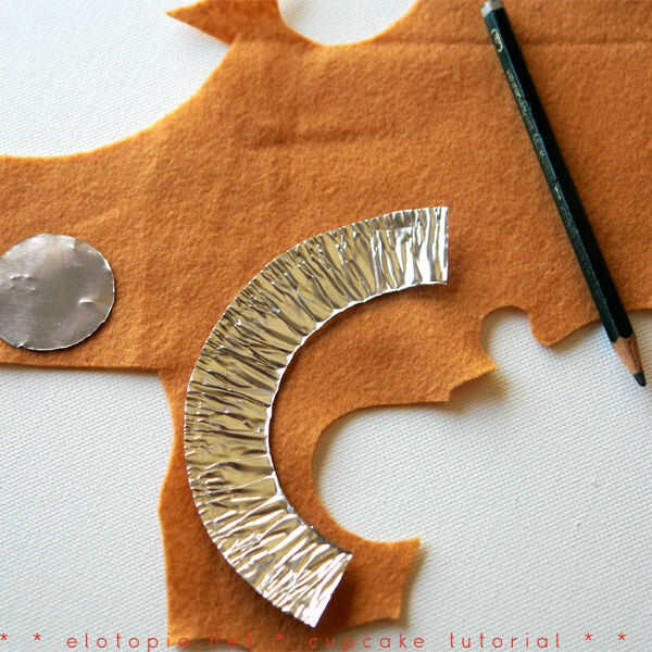 Coloque sobre el fieltro color que usas para el cuerpo de la torta. Escogí esta luz marrón, es sólo un pastel normal. Pero si encanta el chocolate, no tenga miedo de usar marrón oscuro!