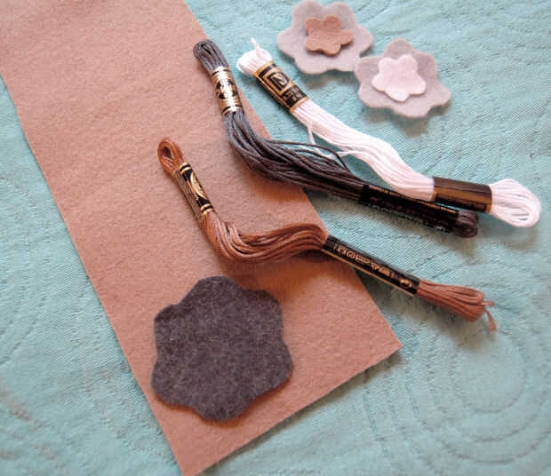 partí un trozo de 6 hilo de embrodery hilo en 3 mechones. Me gusta usar varios colores para mezclar un poco.