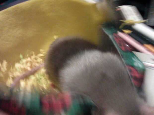Agrega tu mascota! Pimienta cavó su camino a la parte inferior y alcanzó su punto máximo de su pequeña nariz para arriba, entonces intentó explorar la tabla desordenada! Ella ama el césped de papel! Ella había masticado un poco, olfateó alrededor, cavó en ella y tenía un montón de diversión en su nueva canasta!
