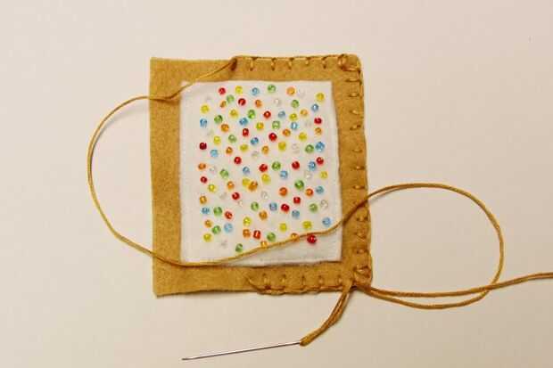 Coloque pedazos de fieltro marrón junto y bordado en los bordes con una puntada de manta.