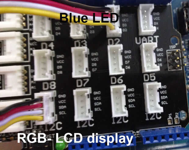 conectar LED azul D2 pin y pantalla LCD para I2C.
